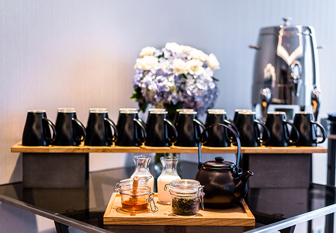• Enjoy a refreshing selection of coffee, tea, juice boxes, and detox water during your meeting